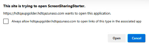 - Once the link is clicked, the following window appears. Click Open to start the Screen Sharing Session.