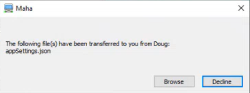 If the user accepts the files, the files will begin to transfer files to the users default download location configure within their saved screen sharing options (shown later in document). If the default location has been set, it should be asked for at this point.