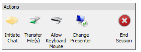 The viewer ribbon contains only three options, leaving out Allow Keyboard Mouse and Change Presenter from the Presenter version: